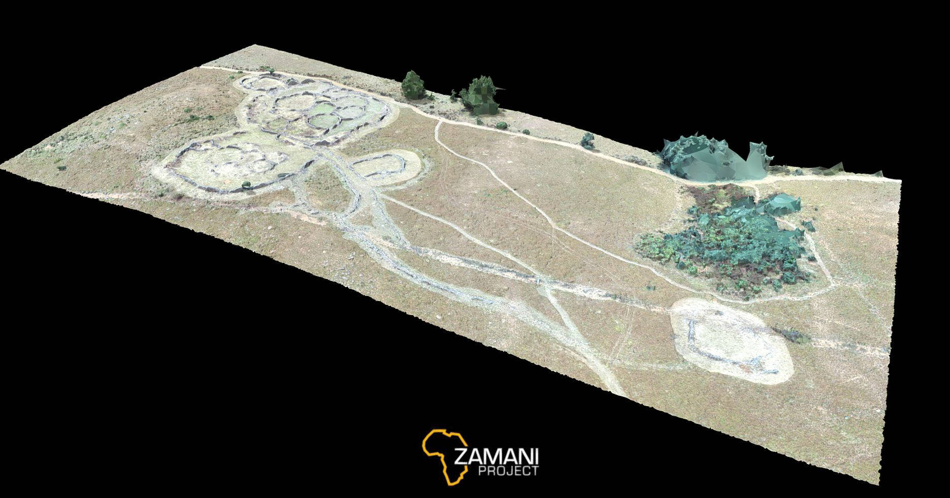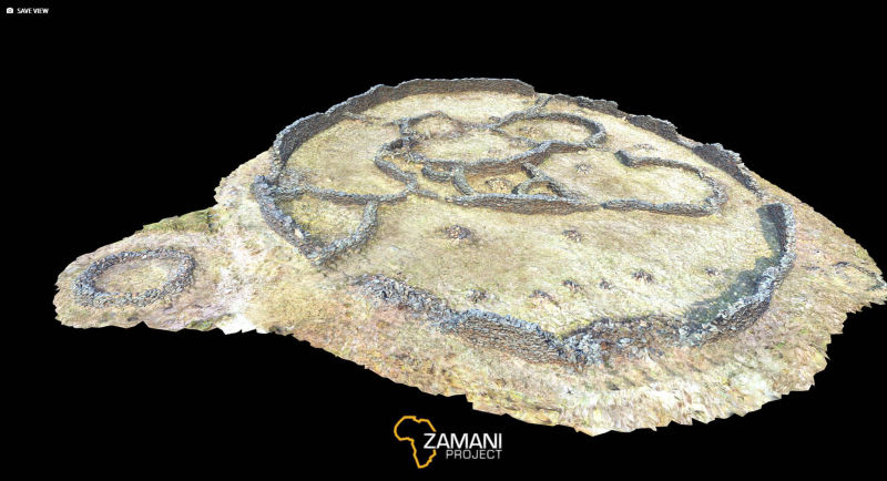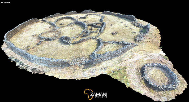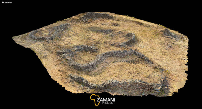 This site was documented by the Zamani Project in April 2021 in cooperation with the Department of Architecture at Tshwane University of Technology. 500 images (Nikon D7200), 250 Drone images from a DJI Phantom 4 Pro and over 80 laser scans (Z+F 5010X) were used to produce this 3D model.