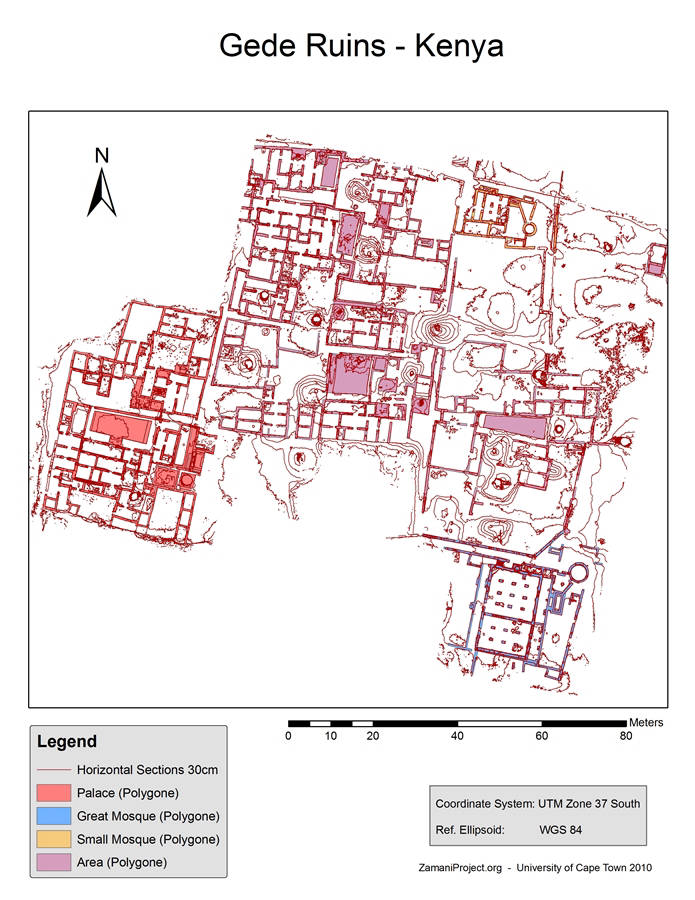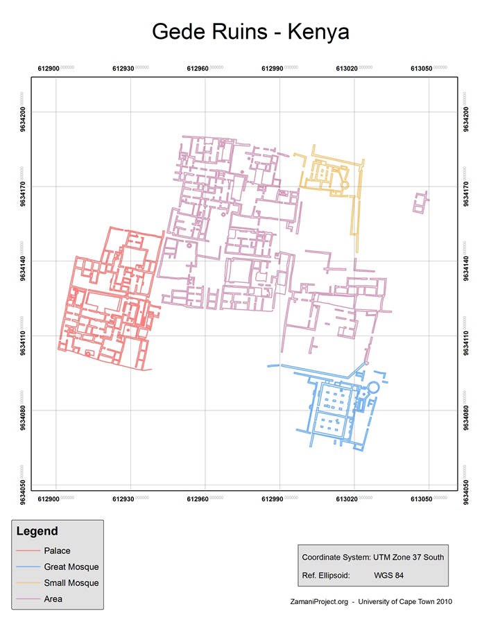 Gede is a Galla word meaning ‘precious’ and is also used as a personal name. It is either the Galla name for the town which they destroyed or the name of the last Galla leader to camp on the site. The true name may have been Kilimani, the Queliman of the Botelho map of 1639.