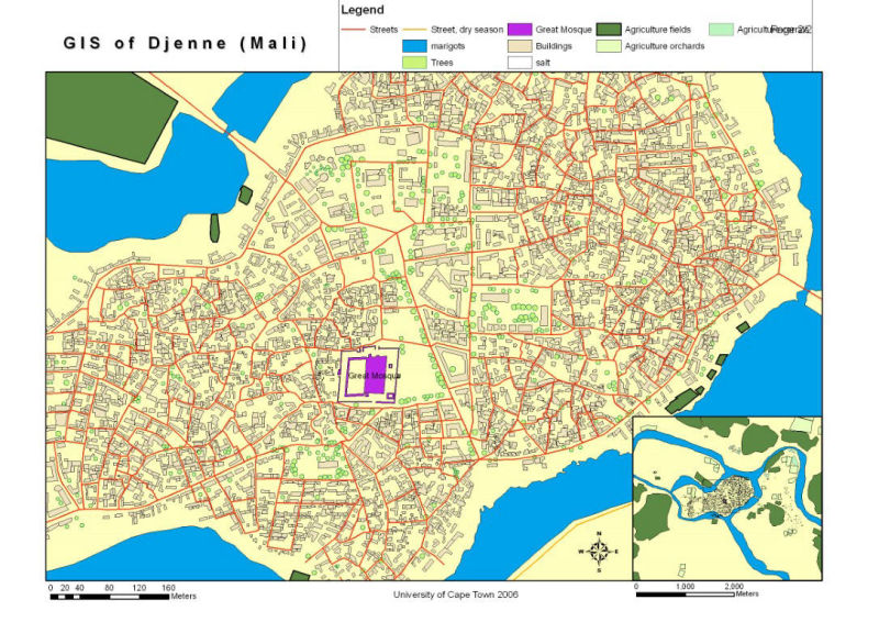 The Great Mosque of Djenné , the tallest historical mud mosque in the sub-Saharan region is considered by many to be the greatest achievement of the Sudano-Sahelian architectural style, In Djenné, the entire community takes an active role in the mosque’s maintenance via a unique annual festival. This event is coordinated by the barey-ton, the local corporation of traditional masons. Despite the yearly maintenance campaigns and the inscription of the Old City as a World Heritage Site in 1988, the Mosque was in poor condition. Started with architectural survey and studies in 2008, restoration work aimed to guarantee the stability of the building by consolidating the carpentry and wall bearing system. Work was completed in 2010.