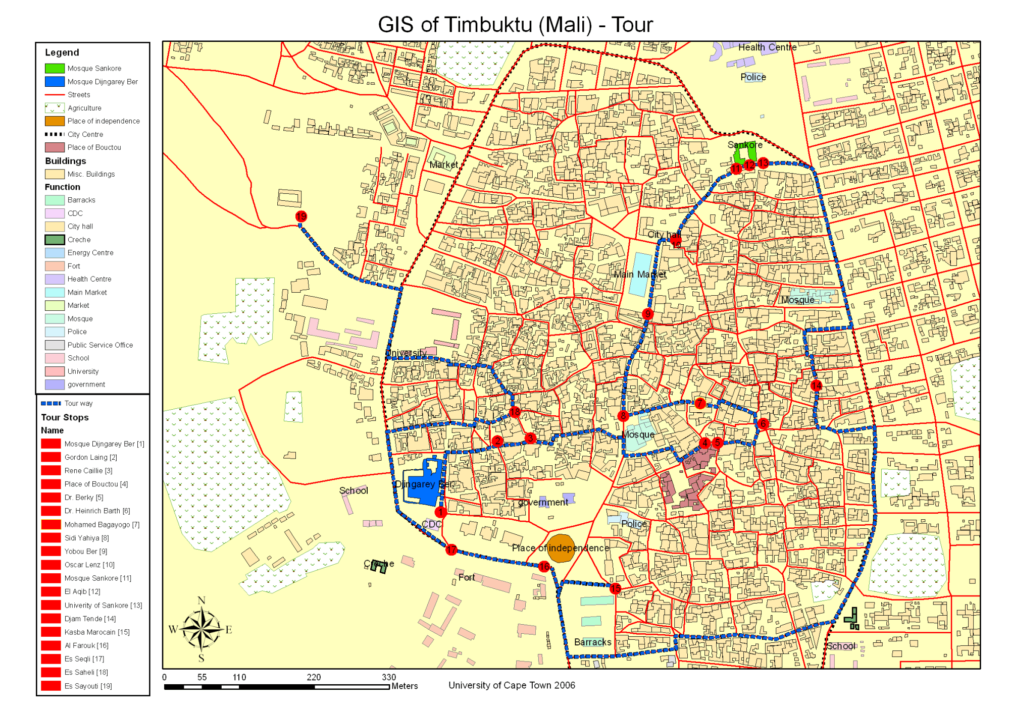 Built in 1325 by the poet Abu Ishaq Es Saheli of Granada, Djingareyber collapsed and was rebuilt several times (1507-1583, 1678, 1709 and 1736) according to the new developments of and uses of the sanctuary.