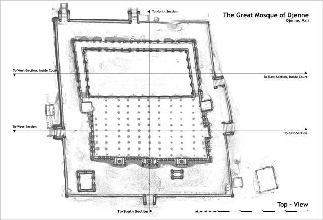 The mosque belongs to the Sudano-Sahelian architectural style with a qibla wall to the east, facing Mecca, the mosque has a covered prayer space, about 50 m by 26 m, an interior courtyard, 104 ventilation holes on the roof, the mosque influenced the construction techniques of many earthen mosques in Mali. Its dimensions are: length: 85 m, width: 65m, ceiling height: 8 m, total floor area: 6,375 m², height of the central minaret: 18m, number of pillars: 90. This mosque is part of the “Ancient cities of Djenne ”, classified by the national cultural heritage by Decree n ° 92-245 / P-RM of December 18, 1992 and registered since 1988 on the UNESCO World Heritage List.